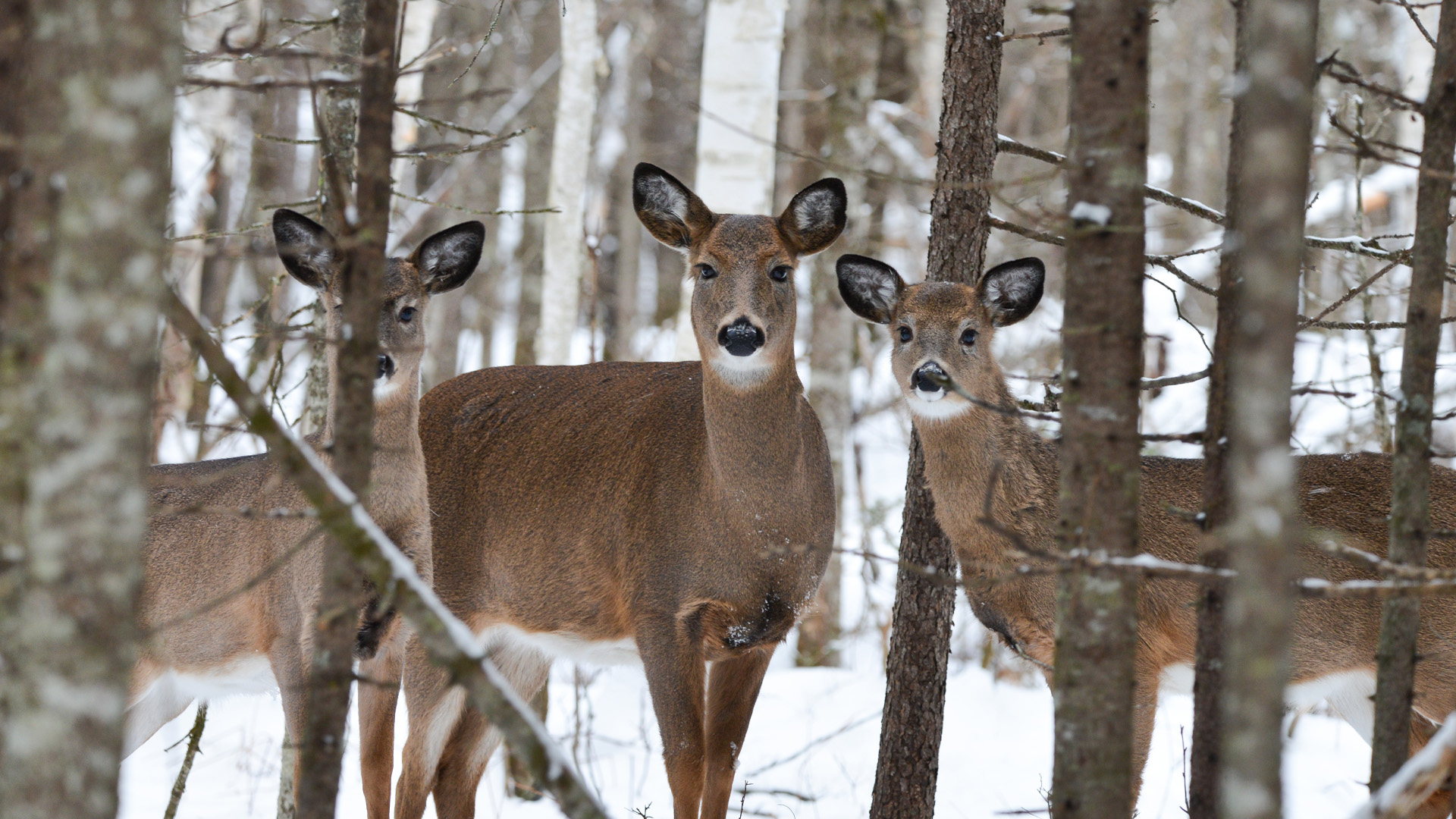 White-tailed deer are some of the most popular animals to see walking around the winter landscape. They will stick close to open fields or at the edge of the forest, foraging during the early morning and late afternoon. Look for trails near you, as deer are habitual creatures and will generally travel the same trails. The absence of the thick foliage makes their movements more visible.